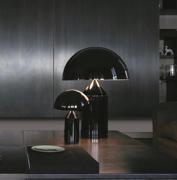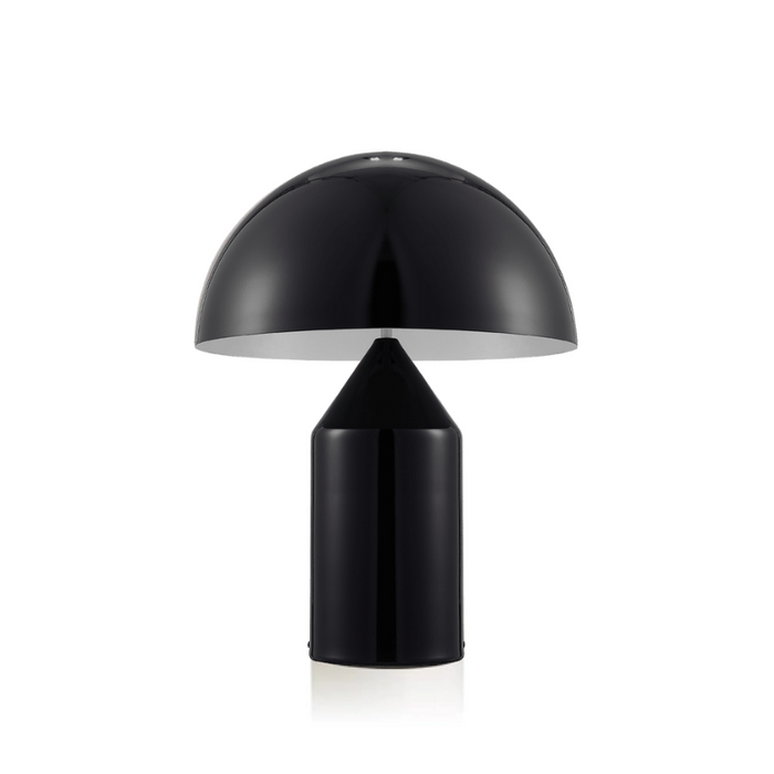 Con un lujoso acabado en oro, blanco y negro, la lámpara Oregon revolucionó por completo la imagen de la clásica lámpara de mesa. Combinando formas geométricas de cilindro, cono y hemisferio, Oregon es una lámpara sumamente refinada y audaz a la vez, convertida en un ícono del diseño minimalista moderno.